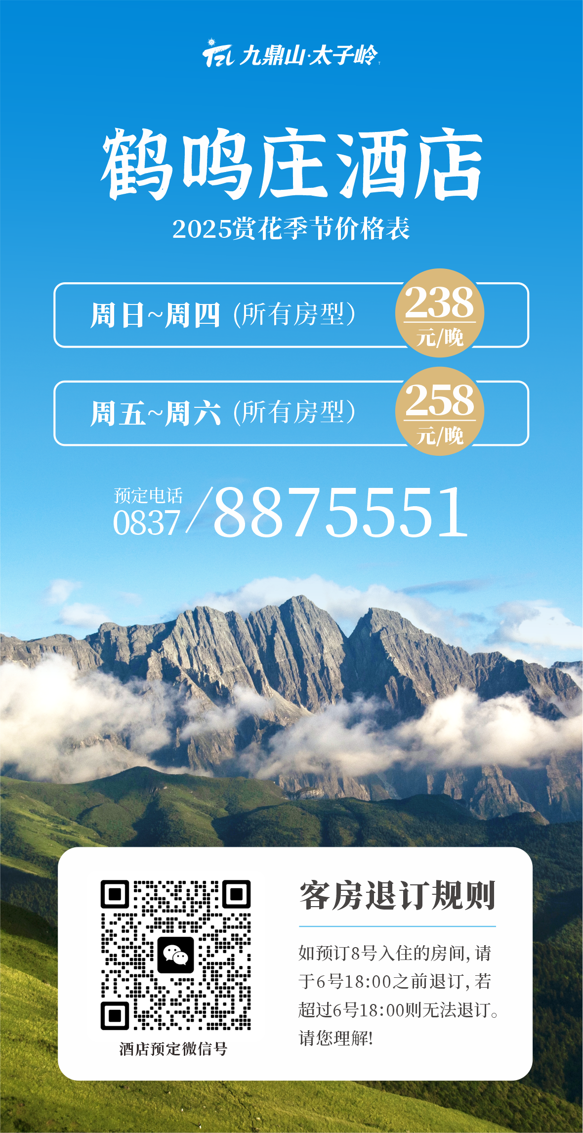 鹤鸣庄假日酒店系四川恩威集团下属旅游产业之一,于2013年11月10日对外营业。酒店位于阿坝州茂县九鼎山太子岭风景区内。酒店按四星级标准建造,位于太子岭滑雪场雪具大厅2-3楼,拥有各类客房70间,房间全部采用木质桑拿板装饰,带有暖气供应,房内高空落地窗让您视野开阔,景区内雪景一览无余。设计独特,装修新颖,具有浓厚的羌族韵味。是您旅游度假的理想圣地。